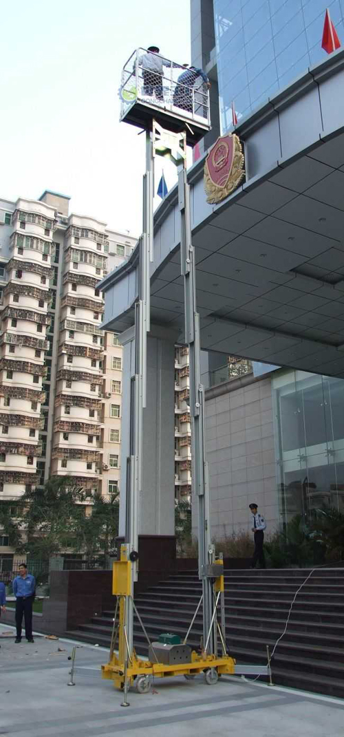鋁合金液壓升降機(jī)主體采用鋁合金材質(zhì)構(gòu)成,具有造型美觀、體積小、重量輕、升降平衡、安全可靠等優(yōu)點(diǎn),用于工廠、賓館、餐廳、車(chē)站、機(jī)場(chǎng)影劇院、展覽館等場(chǎng)所。該升降機(jī)承載能力強(qiáng),適合于兩人(可攜帶一定的重量工具和材料)同時(shí)登高作業(yè);還可根據(jù)不同環(huán)境訂制成各種非標(biāo)產(chǎn)品,以滿(mǎn)足不同需要;是保養(yǎng)機(jī)具、油漆裝修、調(diào)換燈具、電器、清潔保養(yǎng)等用途的伴侶。